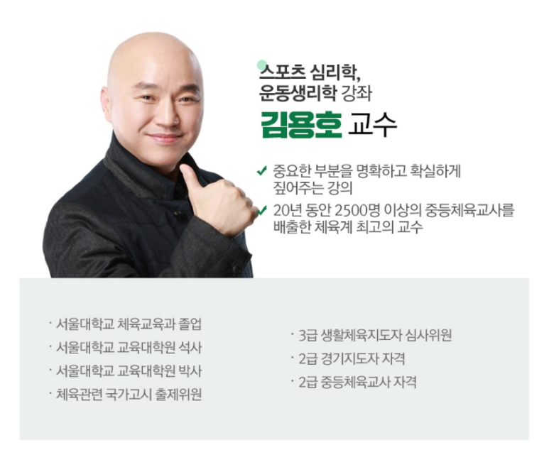 - ν•„κΈ° : κΈ°λŠ₯ν•΄λΆ€ν•™(μš΄λ™μ—­ν•™ 포함), μš΄λ™μƒλ¦¬ν•™, μŠ€ν¬μΈ μ‹¬λ¦¬ν•™, 건강·μ²΄λ ₯평가, μš΄λ™μ²˜λ°©λ‘ , λ³‘νƒœμƒλ¦¬ν•™, μš΄λ™μƒν•΄, μš΄λ™λΆ€ν•˜κ²€μ‚¬