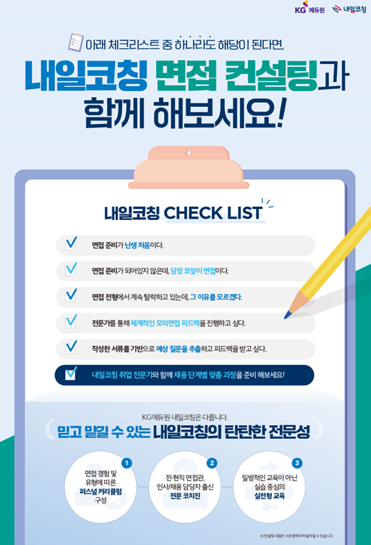 KG์๋์ ๋ด์ผ์ทจ์ ์ฝ์นญ ํ์