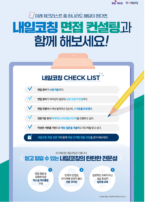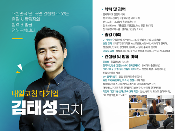 KG내일코칭은 λŒ€κΈ°μ—… λ©΄μ ‘κ΄€ μΆœμ‹  μ½”μΉ˜μ™€