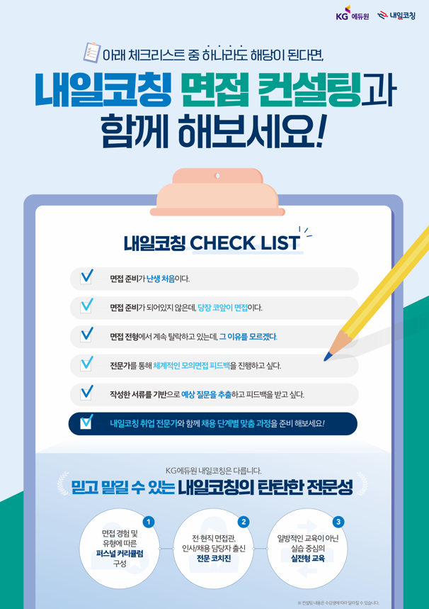 KG์๋์ ๋ด์ผ์ทจ์ ์ฝ์นญ