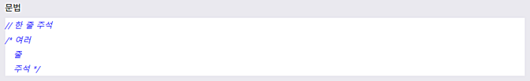 CμΈμ΄μ ν μ€ μ£Όμμ μμμμΉμ //μ μ¬μ©νκ³ , μ¬λ¬ μ€ μ£Όμμ /*λ‘ μμν΄μ λ°λμ */λ‘ λλμΌ ν©λλ€.