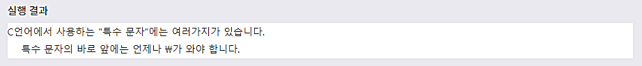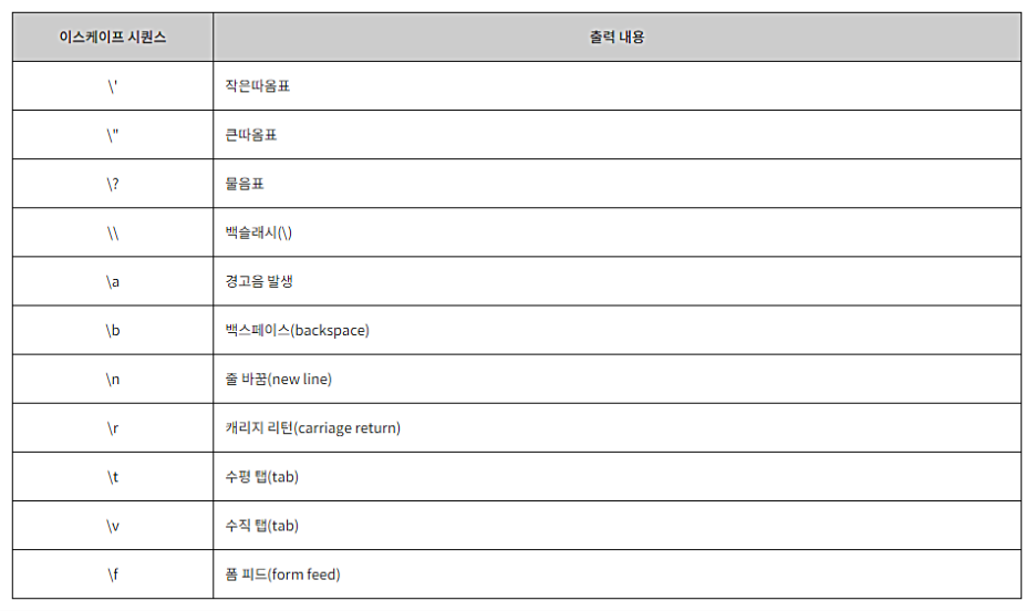 μμ μμ μ 첫 λ²μ§Έ printf() ν¨μμ λμ¨ '\n'κ³Ό κ°μ λ¬Έμλ₯Ό μ΄μ€μΌμ΄ν μνμ€λΌκ³ ν©λλ€. μ΄λ¬ν μ΄μ€μΌμ΄ν μνμ€λ νλ‘κ·Έλ¨μ κ²°κ³Όκ° νλ©΄μ μΆλ ₯λ λ μ¬μ©νκ² λ νΉμν λ¬Έμλ₯Ό μν΄ λ§λ€μ΄μ‘μ΅λλ€.
