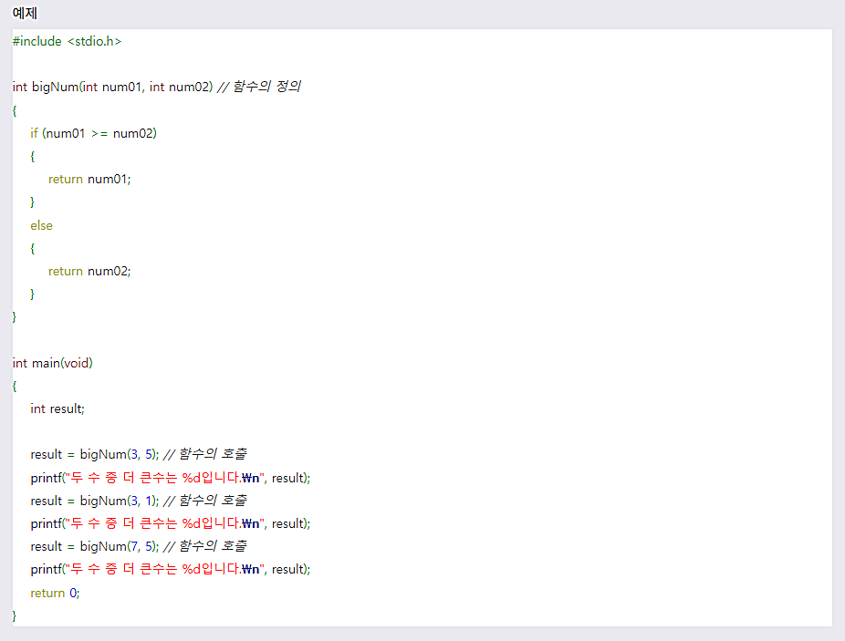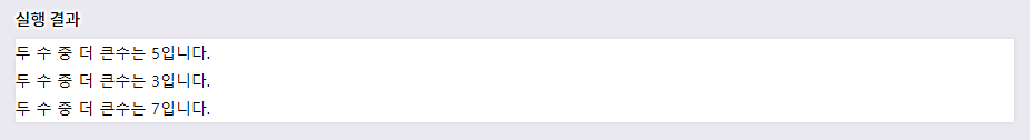 λ€μ μμ μμλ μΈμλ‘ μ λ¬λ°μ λ μ μ€μμ λ ν° μλ₯Ό λ°ννλ bigNum() ν¨μλ₯Ό μ μνμ¬ μ¬μ©ν©λλ€.