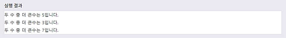 λ€μ μμ μμλ μΈμλ‘ μ λ¬λ°μ λ μ μ€μμ λ ν° μλ₯Ό λ°ννλ bigNum() ν¨μλ₯Ό μ μνμ¬ μ¬μ©ν©λλ€.