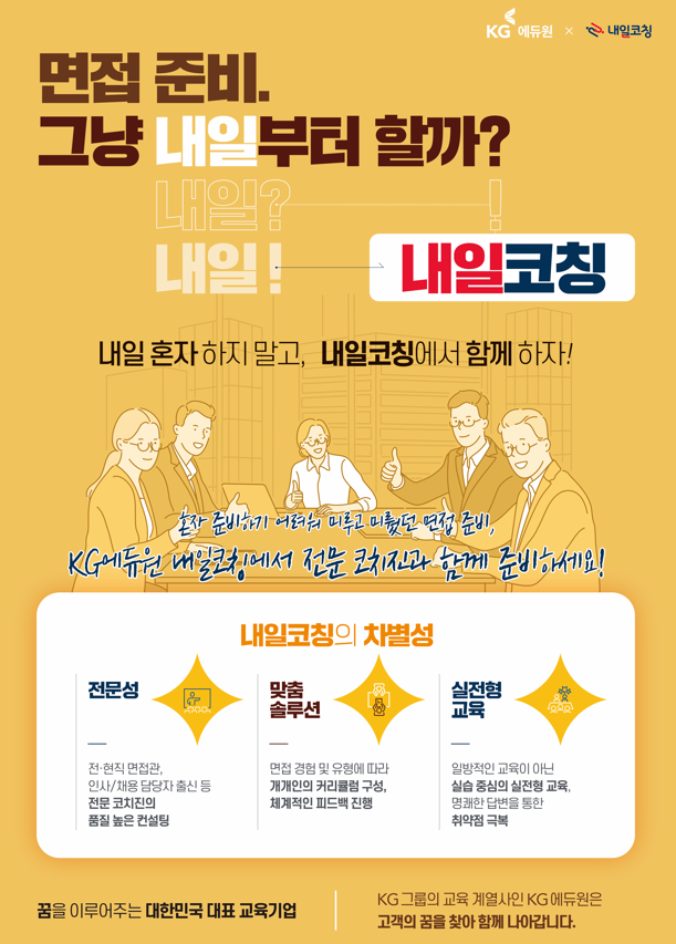 KG์๋์ ๋ด์ผ์ทจ์ ์ฝ์นญ