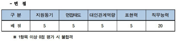 ๋ฐ์— ๋น„ํ•ด ๊ฒฝ๋ ฅ 10์  ๋ฉด์ ‘ 40์ ์œผ๋กœ ๋ณ€๋™์ด
