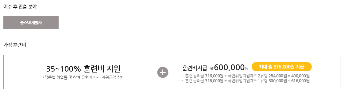 100% ๊ตญ๋น์ง์์ ํตํ ๋ฌด๋ฃ ๊ต์ก + ๋งค์ ํ๋ จ๋น์ง๊ธ(์ ์ต๋ 816,000์)