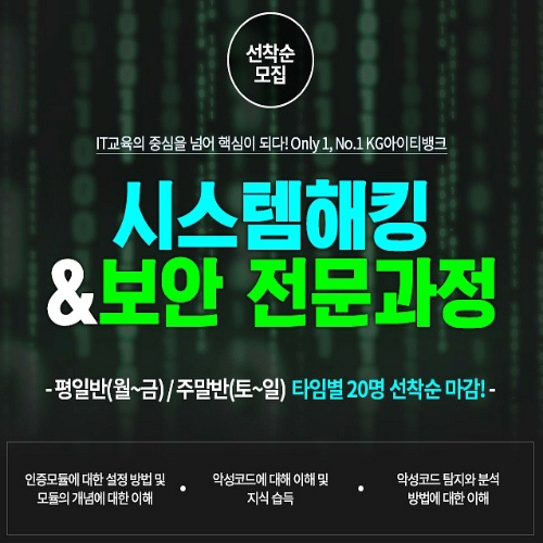 KG์์ดํฐ๋ฑ ํฌ ์ ๋ณด๋ณด์ ๊ต์ก๊ณผ์ - ์์คํ ํดํน & ๋ณด์